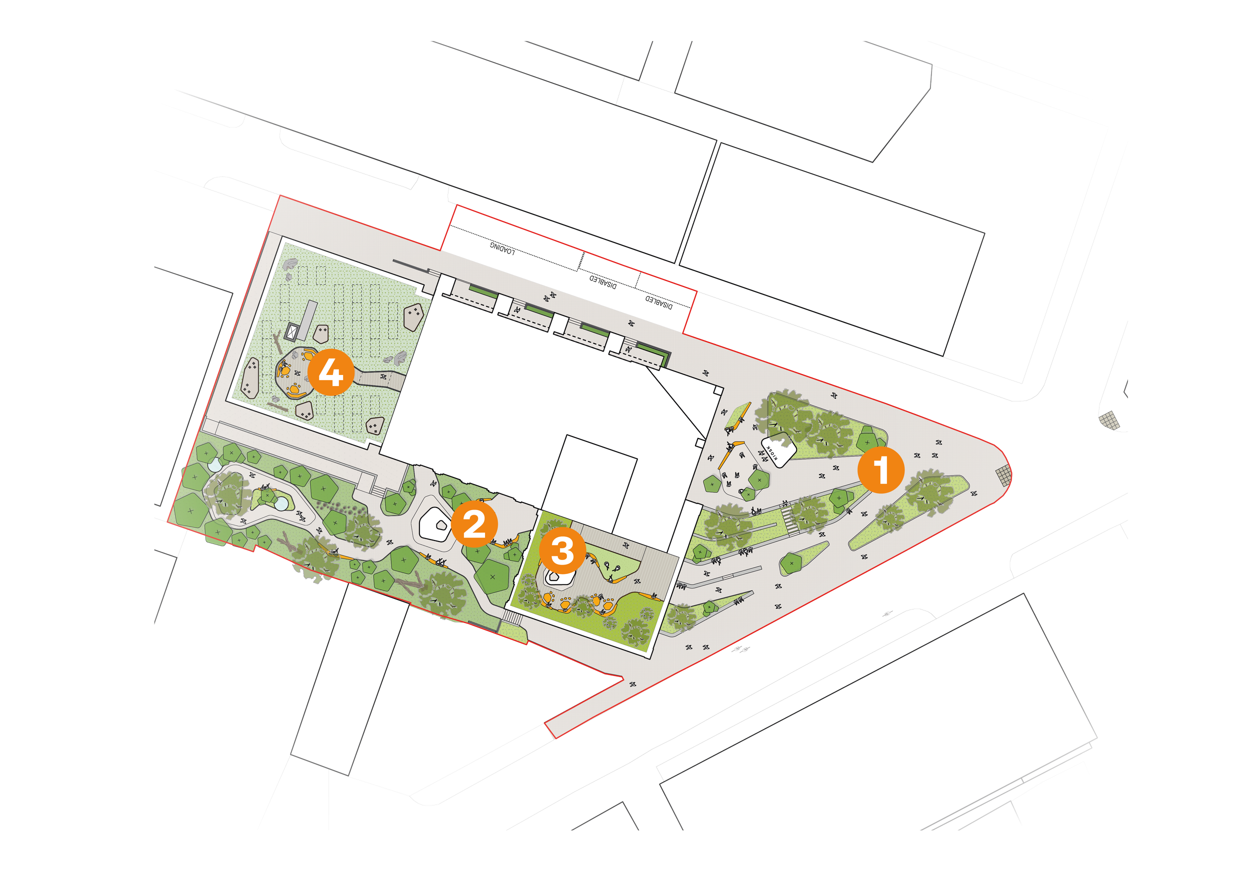 Plan showing the proposed areas of landscaping and public realm